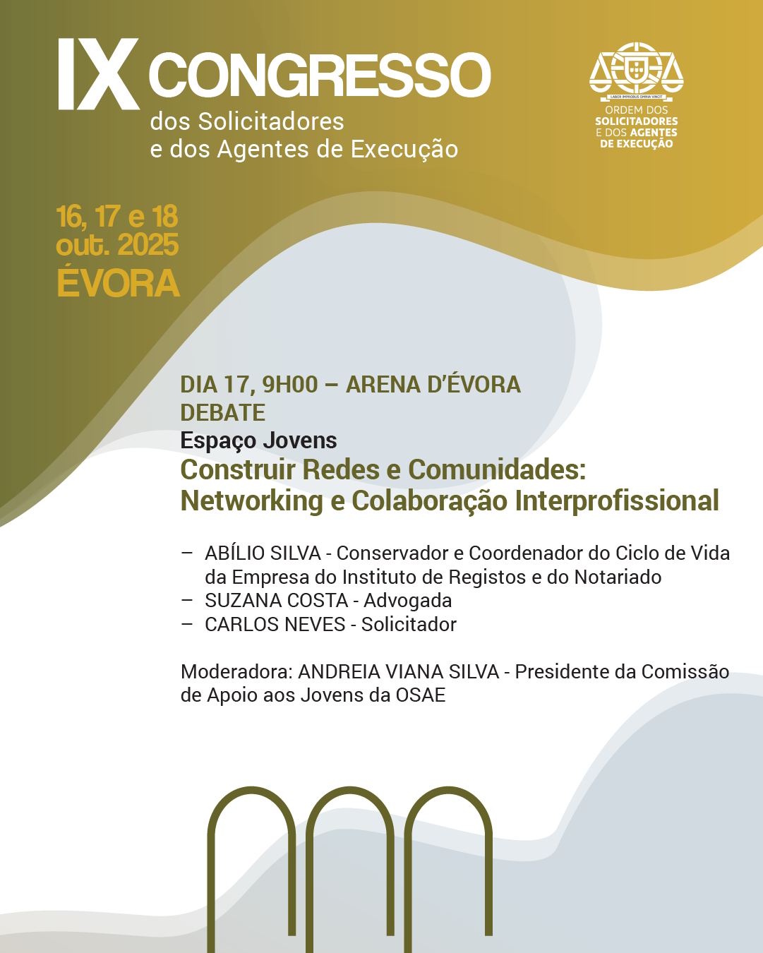 Investigadores do Instituto Jurídico Portucalense (IJP) marcam presença no IX Congresso de Solicitadores e Agentes de Execução (OSAE), que decorreu entre 16 e 18 de outubro de 2025, em Évora.